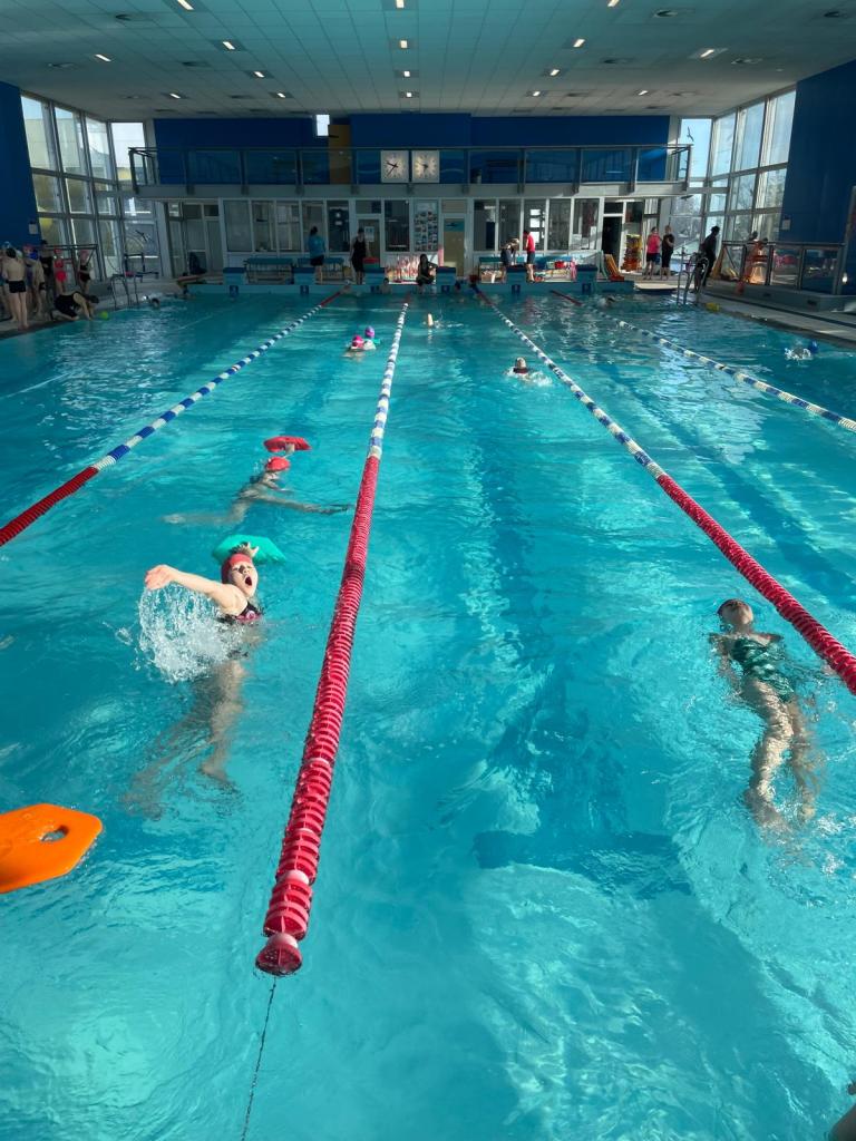 Žáci 4. třídy pokračují v povinné plavecké výuce. Plavání probíhá jednou týdně v Aquaparku Kladno.
